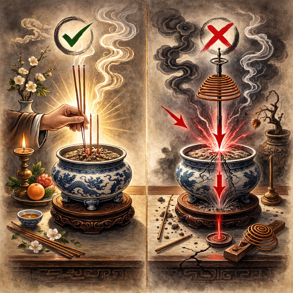 2️⃣ Vậy vì sao que đỡ hương vòng lại bị nói là tạo sát khí?