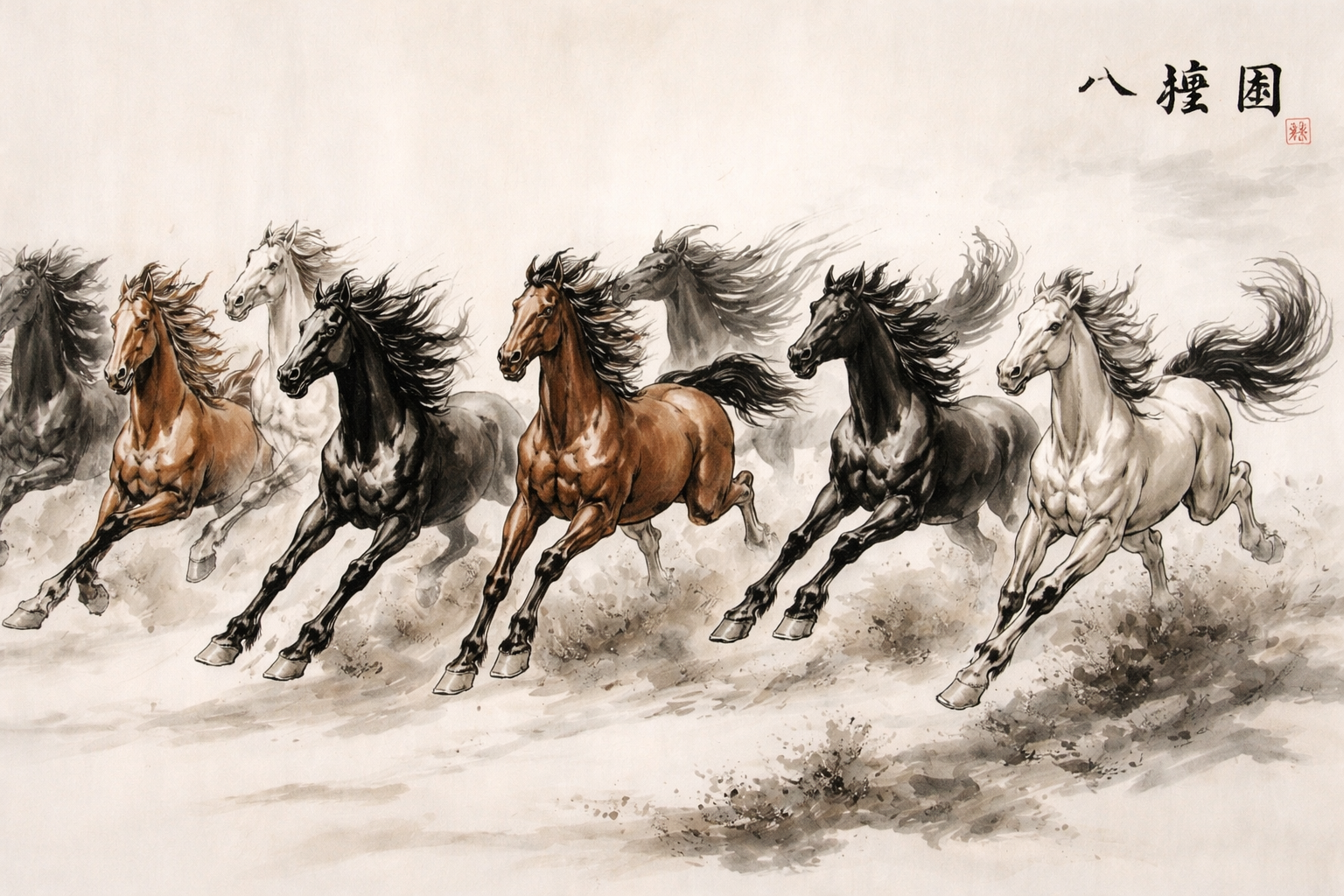 Nhưng trong điển tích cổ, “Bát mã” còn tượng trưng: